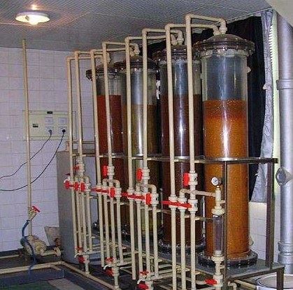 小型的離子交換設(shè)備常采用有機(jī)玻璃交換柱,有利于觀察樹脂運(yùn)行情況。如混合離子交換器再生分層是否充分,陽離子是否“中毒”等,樹脂損耗情況等。